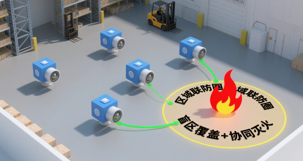 在實(shí)際消防場(chǎng)景中,單一裝置的 “滅火” 并非終點(diǎn),還需與聲光報(bào)警裝置、應(yīng)急照明、疏散指示、排煙系統(tǒng)、門(mén)禁系統(tǒng)等協(xié)同配合,才能最大限度減少火災(zāi)損失。而物聯(lián)網(wǎng)技術(shù)的融入,讓自動(dòng)跟蹤定位射流滅火裝置成為 “消防協(xié)同網(wǎng)絡(luò)” 的關(guān)鍵節(jié)點(diǎn),具備 “跨系統(tǒng)聯(lián)動(dòng)響應(yīng)” 的特點(diǎn)。當(dāng)裝置通過(guò)物聯(lián)網(wǎng)確認(rèn)火情后,會(huì)立即向消防物聯(lián)網(wǎng)平臺(tái)發(fā)送聯(lián)動(dòng)指令,觸發(fā)一系列應(yīng)急動(dòng)作:聯(lián)動(dòng)聲光報(bào)警裝置,提醒現(xiàn)場(chǎng)人員疏散;聯(lián)動(dòng)應(yīng)急照明與疏散指示系統(tǒng),開(kāi)啟逃生通道照明;聯(lián)動(dòng)排煙風(fēng)機(jī),排除火災(zāi)區(qū)域煙霧;甚至可聯(lián)動(dòng)門(mén)禁系統(tǒng),自動(dòng)打開(kāi)消防通道門(mén)。這種 “一鍵聯(lián)動(dòng)” 無(wú)需人工干預(yù),全靠物聯(lián)網(wǎng)數(shù)據(jù)傳輸觸發(fā),響應(yīng)時(shí)間可控制在 10 秒內(nèi),遠(yuǎn)快于傳統(tǒng)的 “人工手動(dòng)啟動(dòng)” 模式。